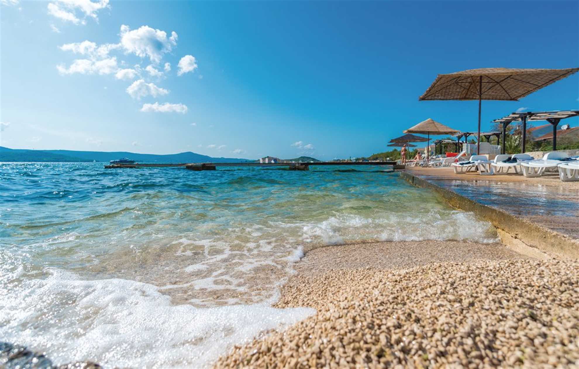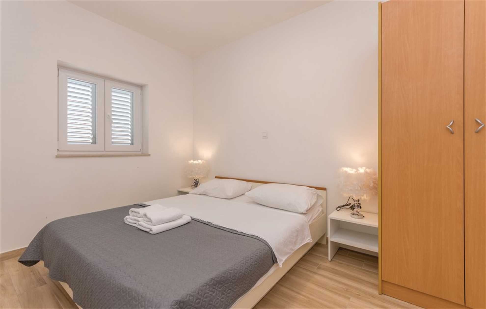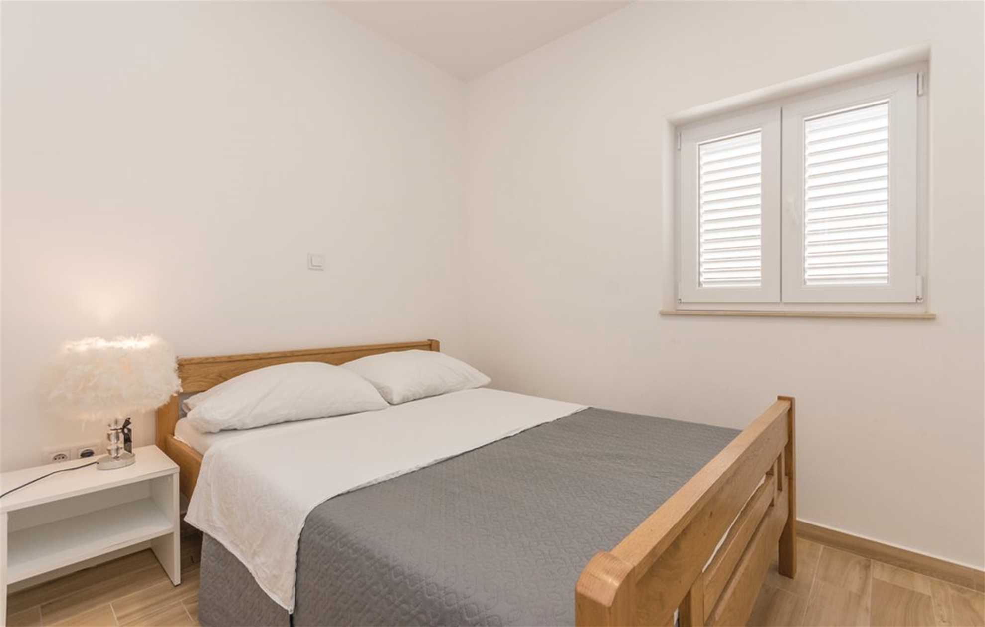 Only 20 meters from the sea you will find this cozy apartment. It is perfect for 4 guests in 2 double bedrooms. Fully equipped open space kitchen with living and dining area and one bathroom with shower are everything you will need during your vacation. There is a seaview terrace with garden furniture for sole use, while there are parking, BBQ and laundry facility shared with other apartments in the house. In front of the house, on the beach, there are two loungers and one parasol for this apartment to use. There is also a boat mooring option for extra payment on-site.