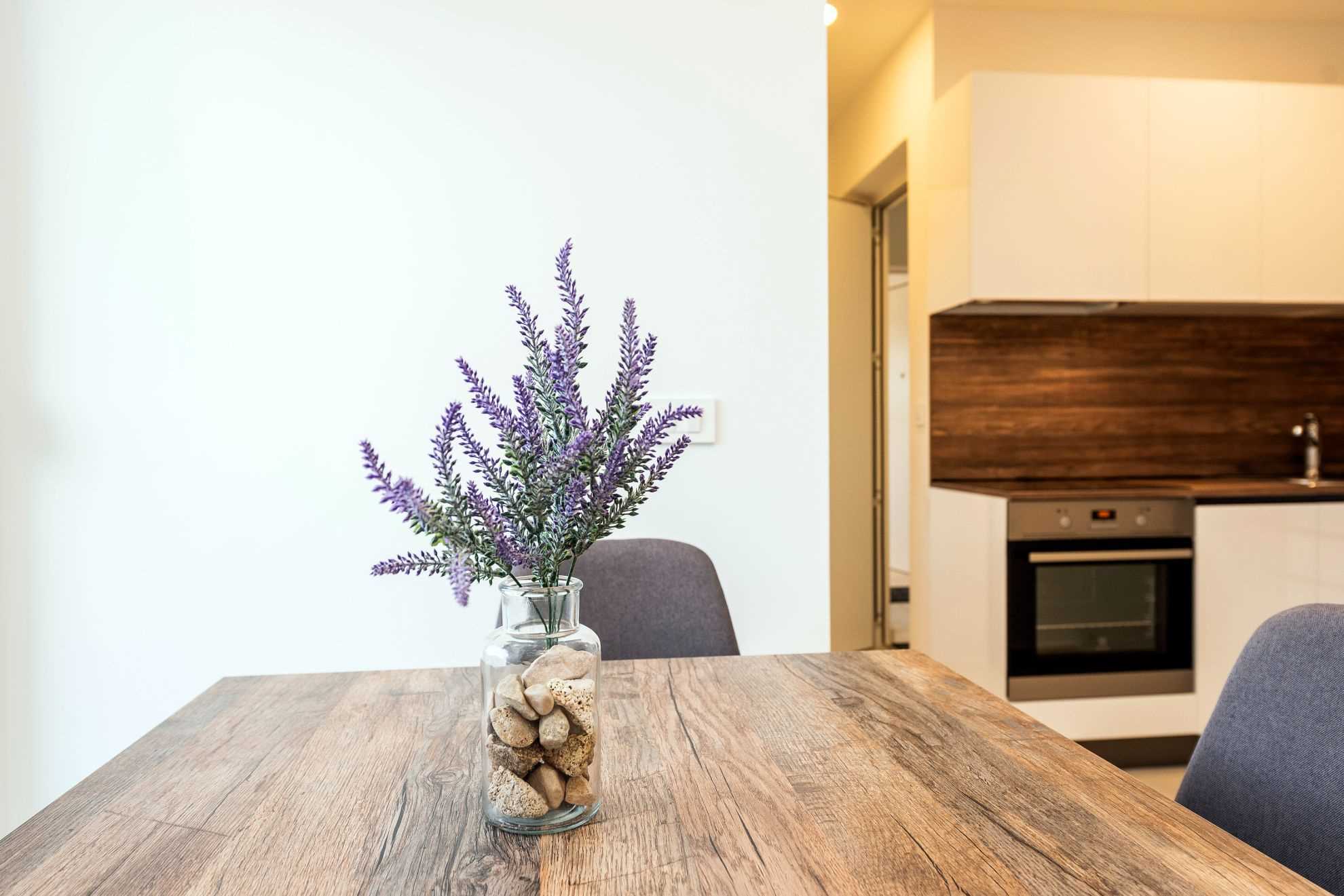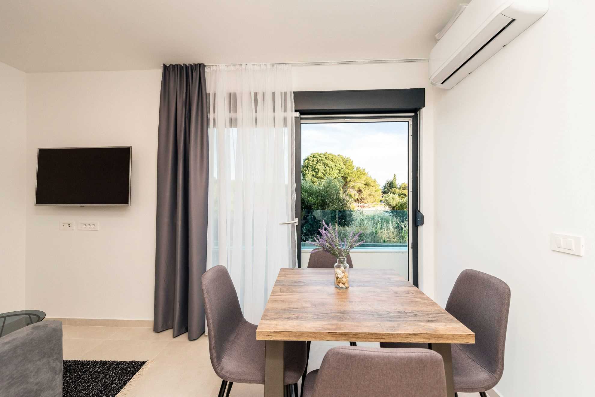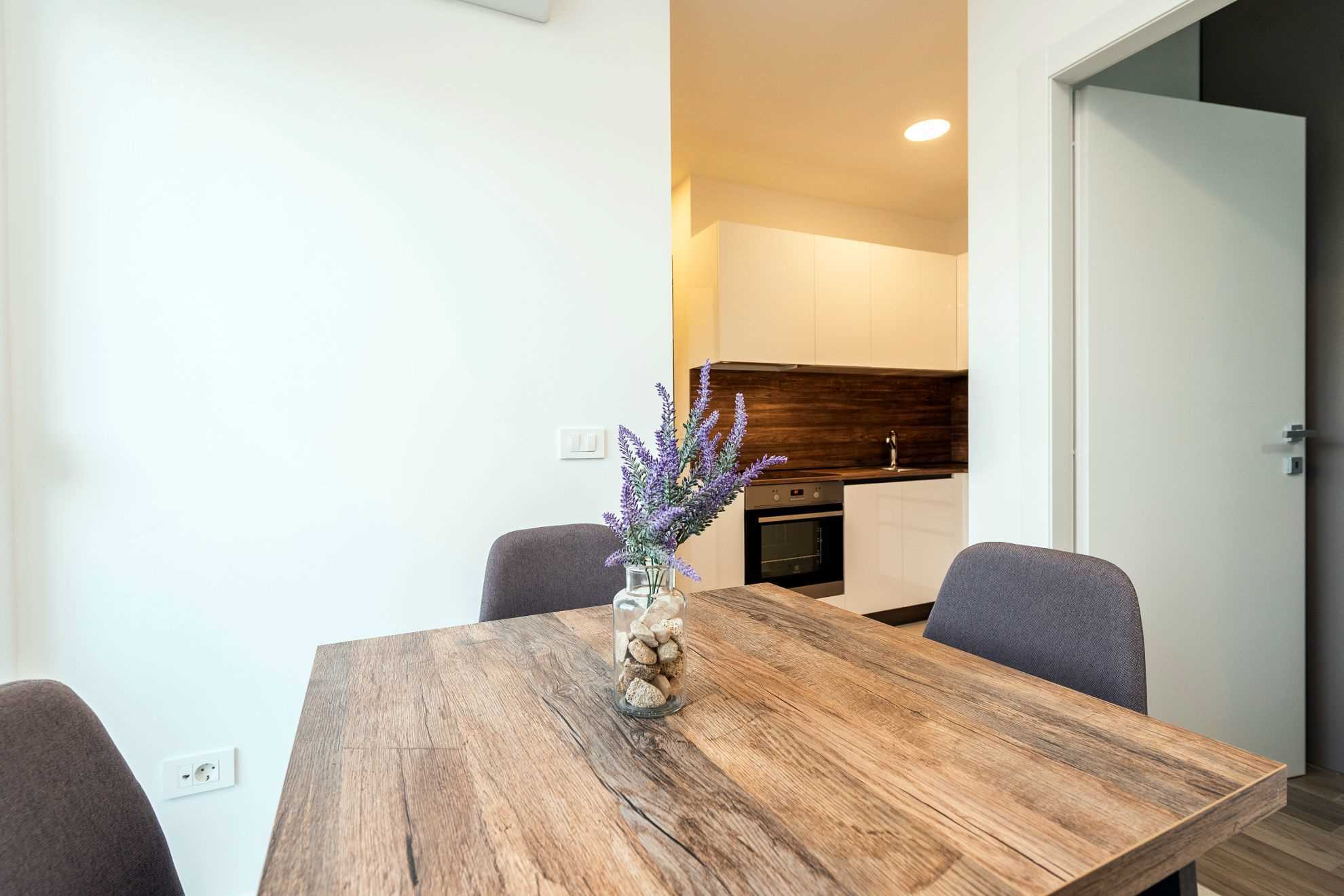 Studio Deluxe Apartment is located on the ground floor of Villa Fresca. In its 20m2 of living space it offers comfortable accommodation for 2 guests. It consists of an elegant kitchen with a dining area and a living room with a sofa and a TV. There is also a bedroom with a double bed and a bathroom with a shower. Guests of the apartment have at their disposal a balcony overlooking the sea and the greenery-filled garden. The interior of the Studio Deluxe Apartment is airy and warm, an ideal choice for couples who wish to spend some alone time.